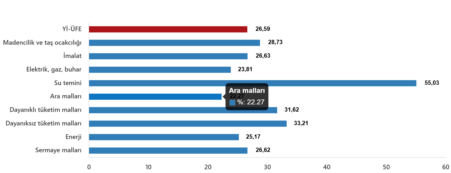 Yurt İçi Üretici Fiyat Endeksi (Yİ-ÜFE) yıllık %26,59 arttı, aylık %2,52 arttı
