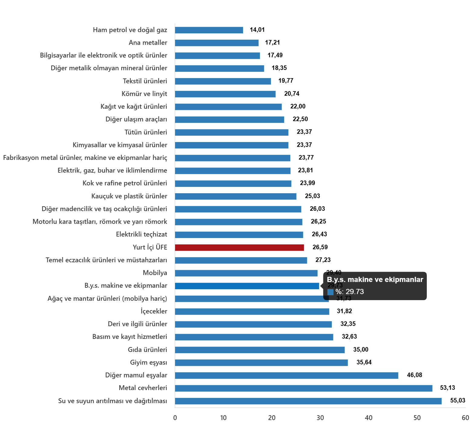 Yİ-ÜFE imalat ürünlerinde yıllık %26,63 arttı